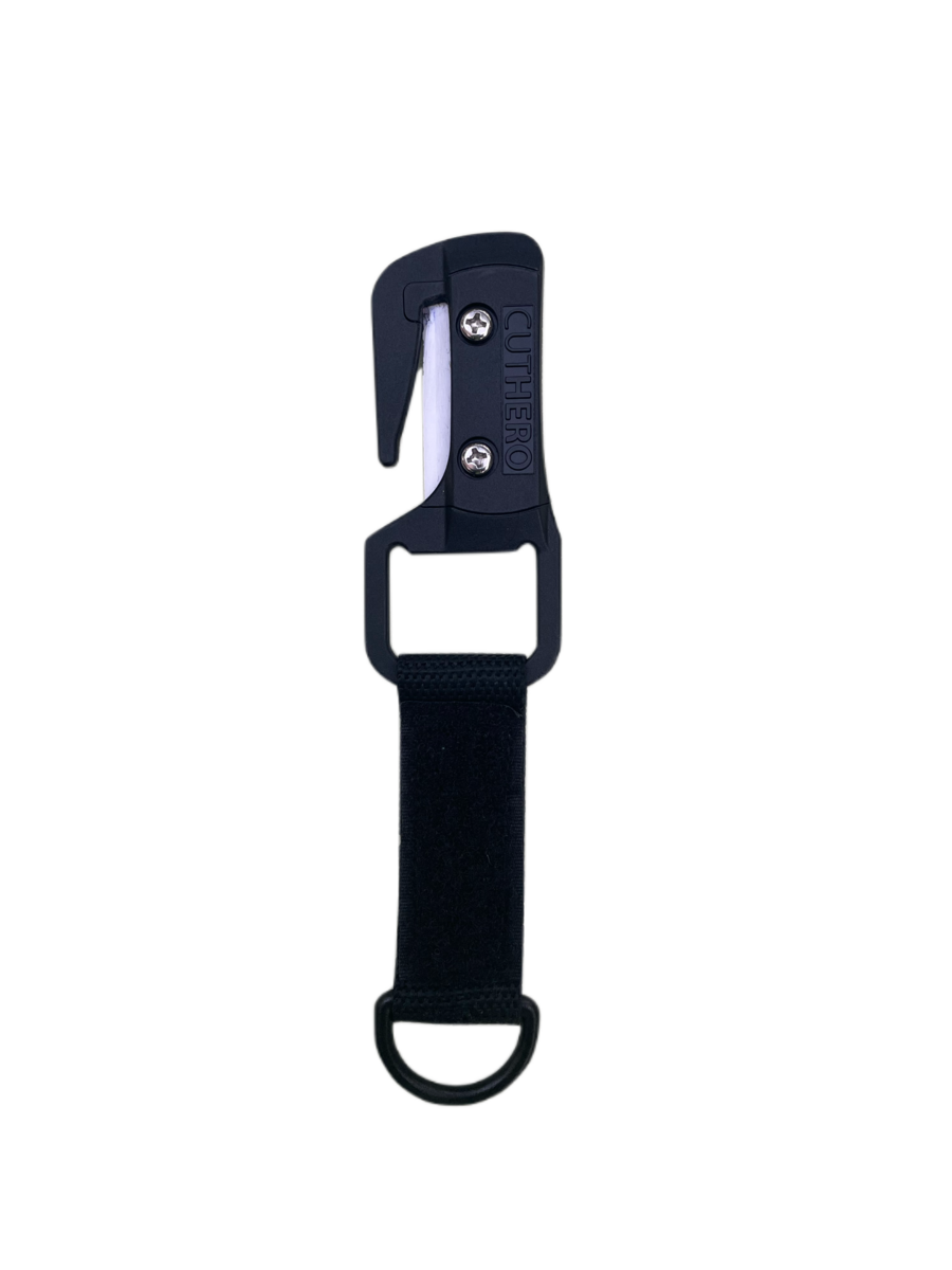 Designed for Scuba Diving, Climbing, Sailing and Sky Diving but useful way beyond. Its ceramic blade is so sharp, it even cuts Kevlar and strong webbing. Out of 6 colors: choose yours - and fit it to your harness!