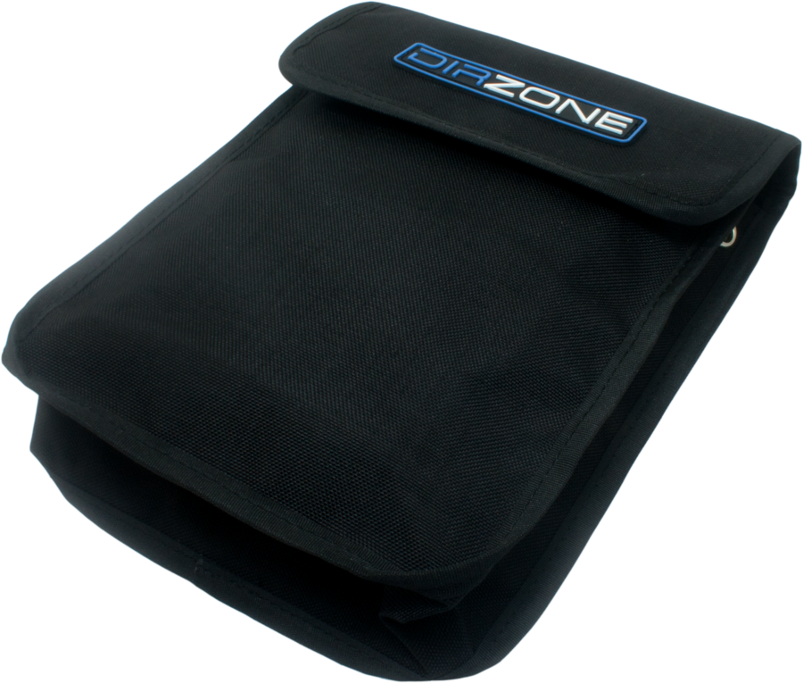 A pocket suitable for sticking on a diving suit, velcro closure. Made for carrying a spare mask, reel, buoy or a snack. Dimensions 29x19x6 cm.