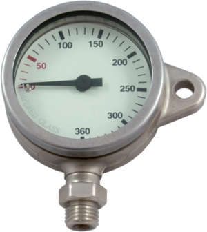 High-quality brass pressure gauge, suitable especially for main tanks and stages.