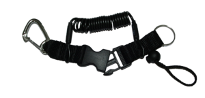 The coil lanyard is reinforced with sainless steel cable. The 132cm/52inch lanyard can be shortened by using the plastic clips.