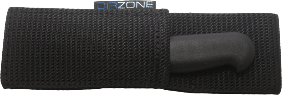 Pocket from polyamide strap, stainless-steel knife with jagged blade.