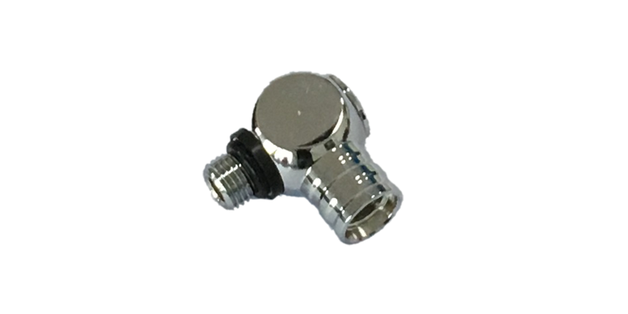 Adapter 90 degree for LP port of 1. stage, with swivel, UNF 3/8, chromed brass