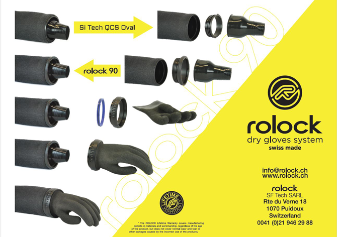 Rolock is a 20 years old dry gloves system that is well know in Europe, especially in Switzerland and in Germany. Initially developed by a Swiss diver, Rolock has been sold to a German company called Aquatool and taken over by SF Tech SARL a Swiss drysuit manufacturer in 2015. Rolock top quality products have always been 100% made in Switzerland and considered as the easiest and simplest dry gloves system on the market.